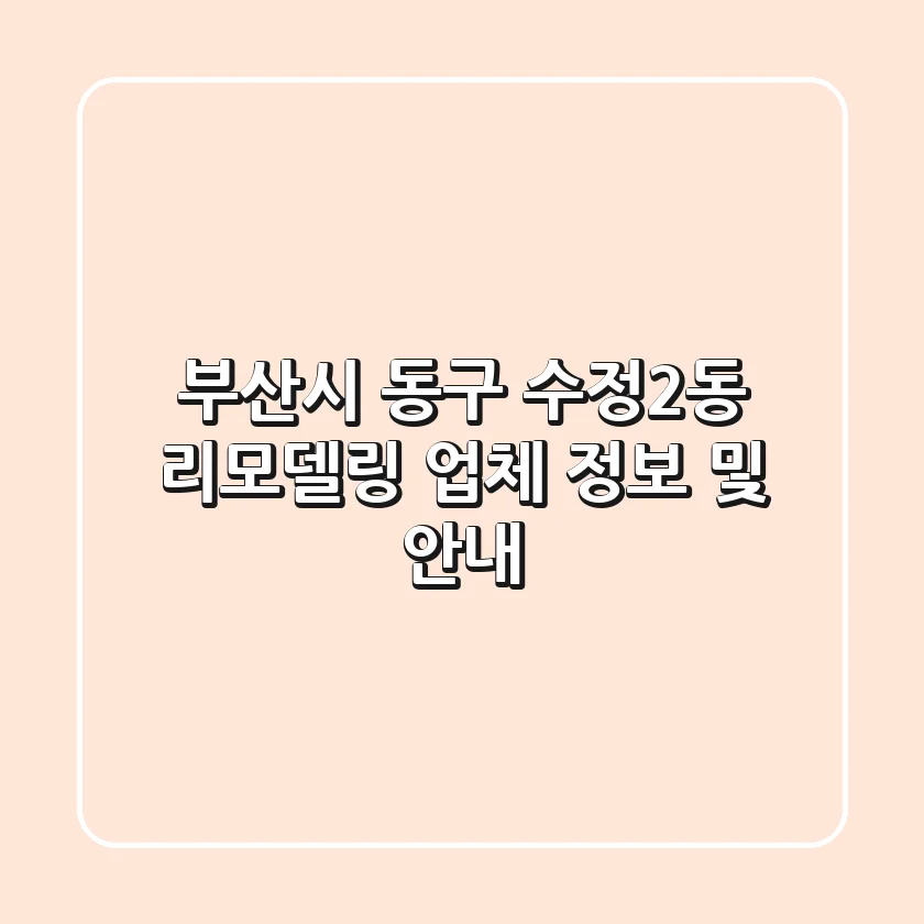아래 소개되는 업체들은 부산 동구 수정2동 및 인근 지역에서 활동하는 리모델링 관련 사업체들입니다. 제공되는 정보는 공개된 데이터를 기반으로 하며, 각 업체의 상세한 서비스 내용이나 견적은 직접 확인하시는 것이 좋습니다. 서비스 종류에 대한 기본적인 이해를 돕고자 마련된 정보이니, 참고하시어 만족스러운 결과를 얻으시길 바랍니다.